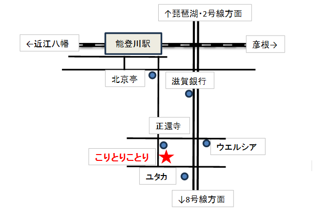 ※能登川駅より車では5分、徒歩では11分のところです