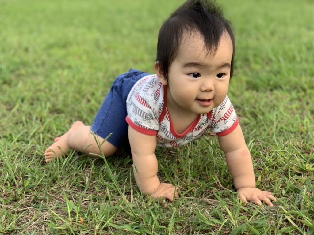 つい先日ハイハイを覚えたばかりでまだよたよたのため…バランスは感覚まだ弱そうです。