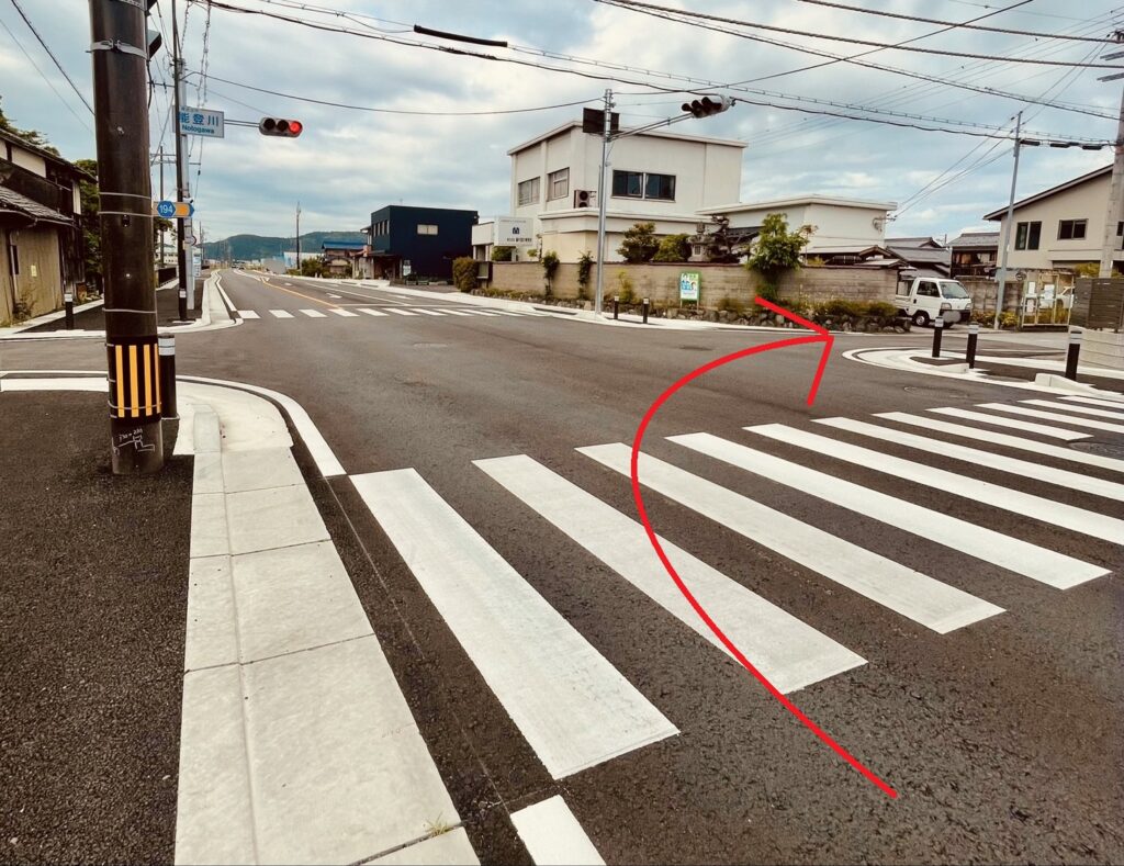 近江八幡方向からですと左折になります